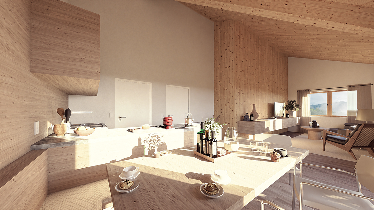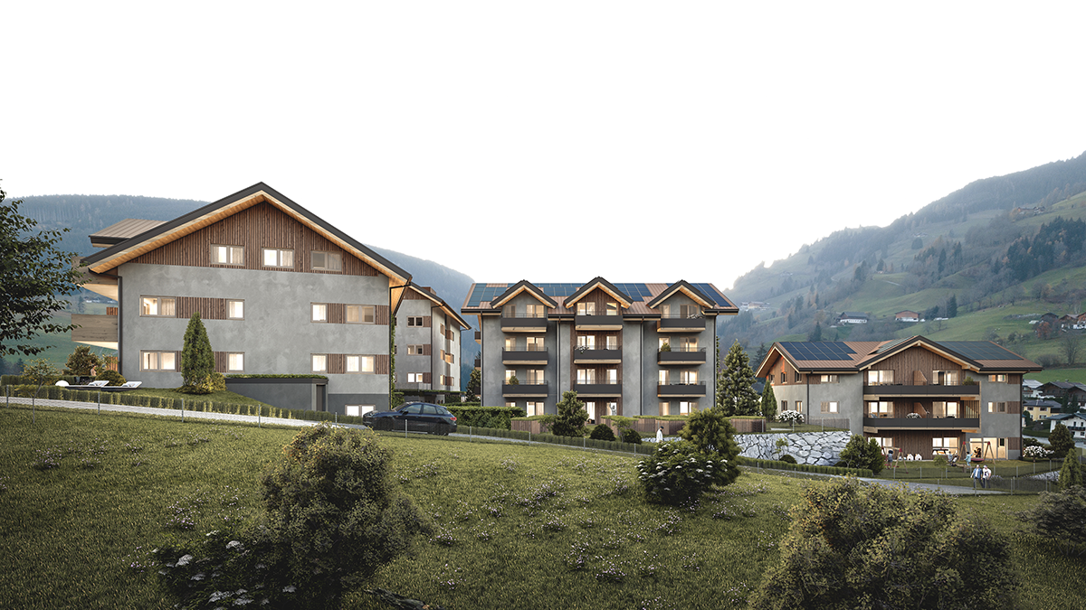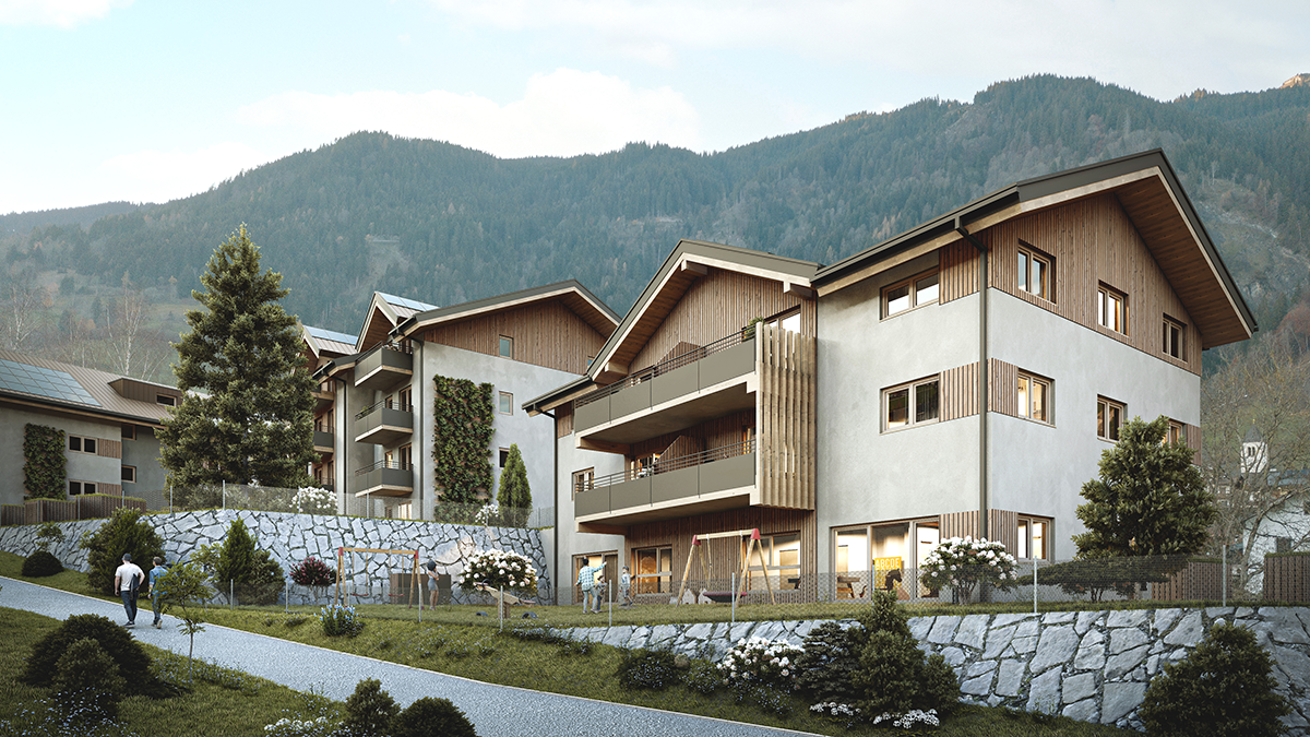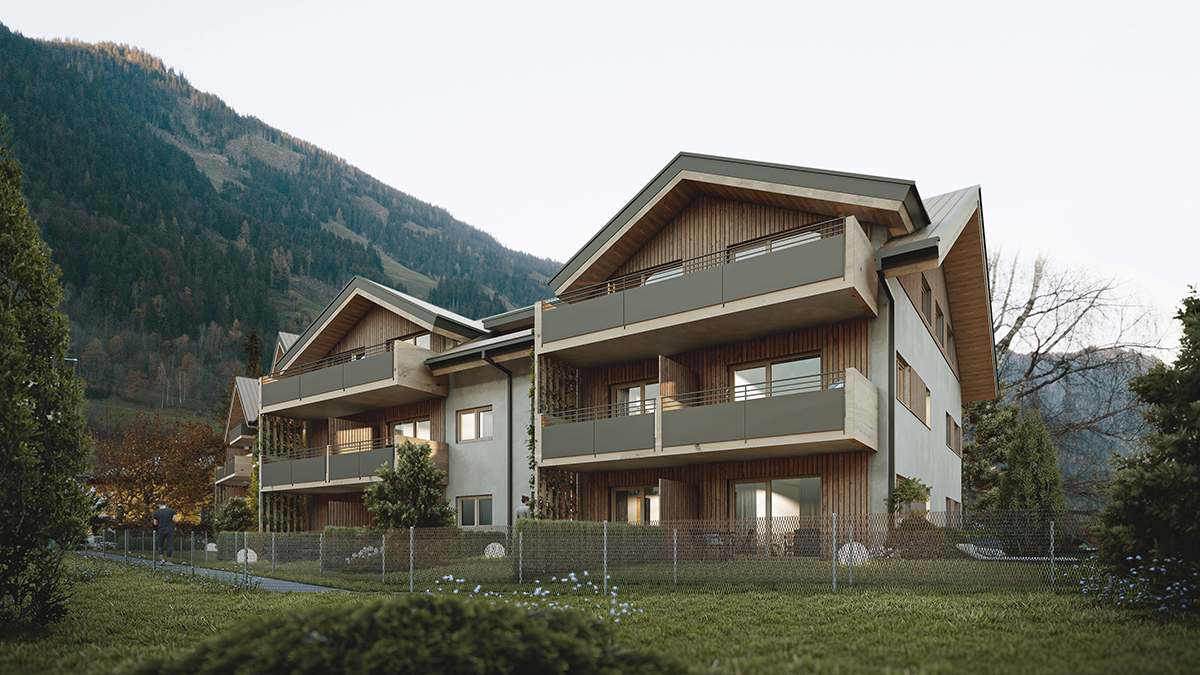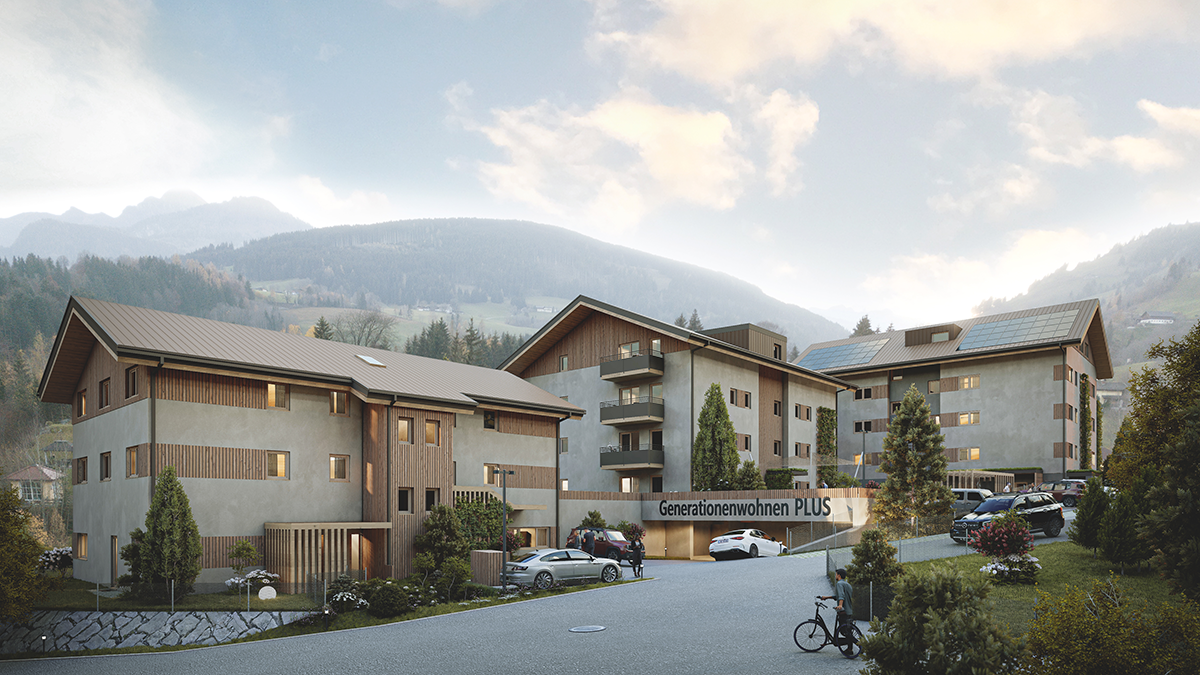 In Goldegg entstehen insgesamt 4 Gebäude mit einer großzügigen Tiefgarage. In Haus 4 werden 4 Eigentumswohnungen und im Erdgeschoss eine Kinderbildungs- & Betreuungseinrichtung mit 2 Gruppen errichtet. Die Häuser 1 bis 3 beinhalten insgesamt 47 Mietwohnungen mit 20 Einheiten für altersgerechtes Wohnen. Ein Gemeinschaftsraum mit ca. 40 m2, ausgestattet mit Küche, Toiletten, Tischen und Stühlen sowie Internet, steht den Bewohnern für gemeinsame Aktivitäten zur Verfügung. Auch der Gemeinschaftsgarten mit Hochbeeten lädt zum Beisammensein ein.