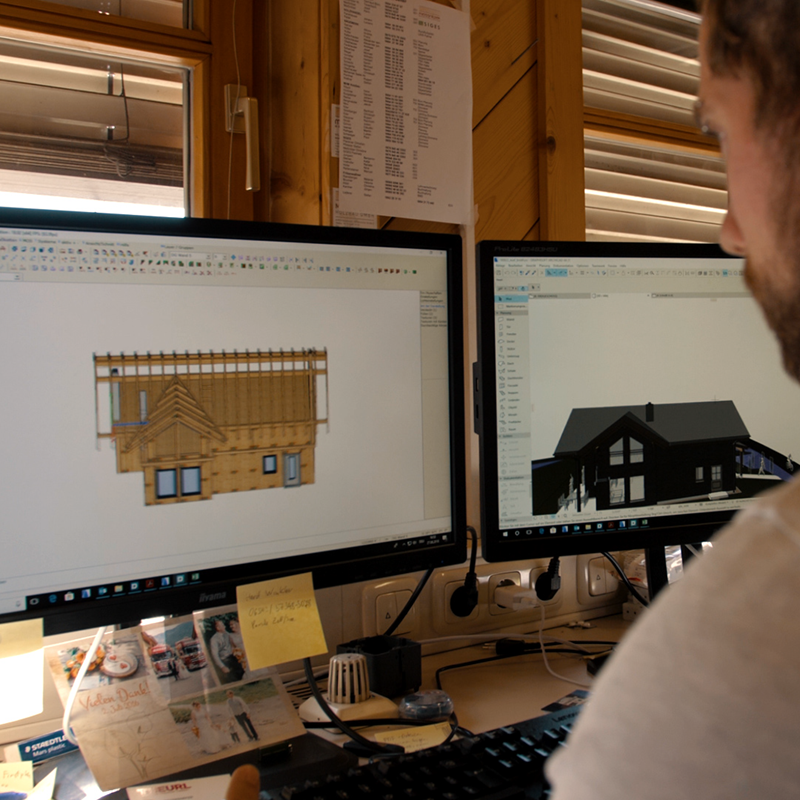 Die Massiv-Holz-Mauer®-Elemente werden millimetergenau nach den Planvorgaben gefertigt. Schrägen, Tür- und Fensterausschnitt, Installationskanäle etc. werden gleich passend ausgeschnitten bzw. gefertigt. Speziell die immer aufwändigere Haustechnik (Smart Homes, intelligente Steuerungs- und Heizsysteme) erfordert detailgenaue Planung und ist mit dem MHM-System leicht realisierbar. Die Produktionsplanung und Elementierung erfolgt im Sägewerk. Dies senkt das Fehlerrisiko beim Bauen enorm.