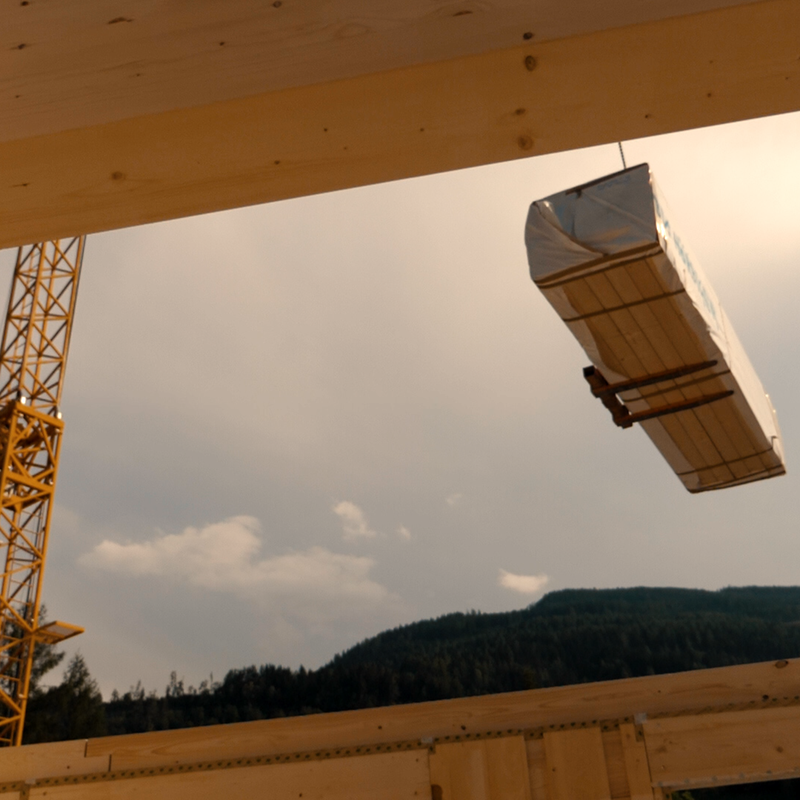 Dank computergesteuerter, präziser Vorfertigung und leichter Montage lässt sich ein Haus aus Massiv-Holz-Mauer®-Elementen in kurzer Zeit errichten. Die Wandelemente müssen nur nach Ihrer Nummerierung zusammengefügt und verschraubt werden. Aufwändiges Messen und damit verbundene Fehlerquellen werden auf ein Minimum reduziert. Für ein normales Einfamilienhaus beträgt die Montagezeit nur wenige Tage. Der Rohbau ist schnell vom eigenen Dach geschützt und alle weiteren Arbeiten könne parallel durchgeführt werden. Dies schafft Ihnen zusätzliche Planungs- und Kostensicherheit.