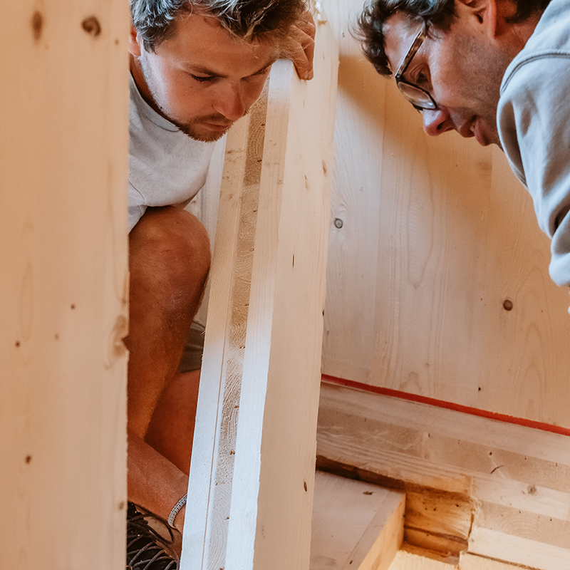 Wir sind Bauträger, Generalunternehmer, Holzbaugeneralisten, Ingenieure, Mediziner, Handwerker... aber vor allem sind wir Menschen. Menschen, die verstehen: Häuser sind mehr als nur Dächer über dem Kopf. Wir bauen daher bezahlbar, sparsam, schick und vor allem: nachhaltig. Wir setzen auf Holz, weil es das Richtige ist – für dich, für alle, für morgen.